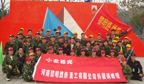 2007年4月21日,北極光大乙風(fēng)光園外展訓(xùn)練基地內(nèi),“河南黎明路橋重工有限公司”的旗幟迎風(fēng)飄揚(yáng),公司40余名新員工在這里參加了為期一天的“同心黎明”拓展訓(xùn)練。