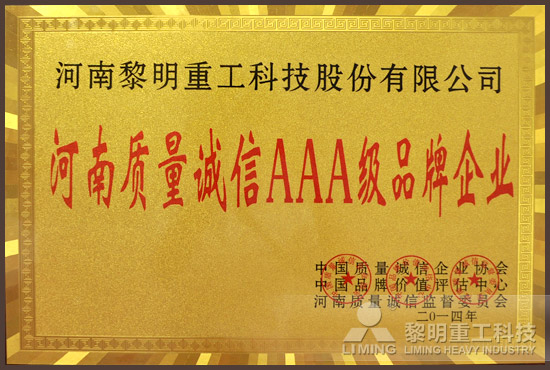 河南質(zhì)量誠信AAA級品牌企業(yè)